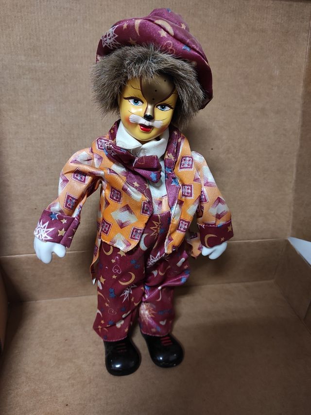 Dettagli del prodottoCarillon a forma di pagliaccio, in ceramica con vestiti in tessuto; perfettamente funzionante (ho video), musica "Per Elisa", quando suona si muove il busto del pagliaccio. Perfette condizioni. Misure in foto. Prezzo trattabile.