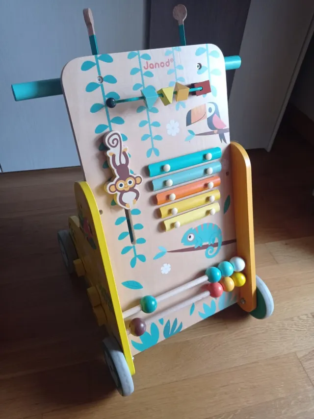 Dettagli del prodottoCarrellino in legno Janod, perfetto per i primi passi e per stimolare la creatività dei più piccoli.
