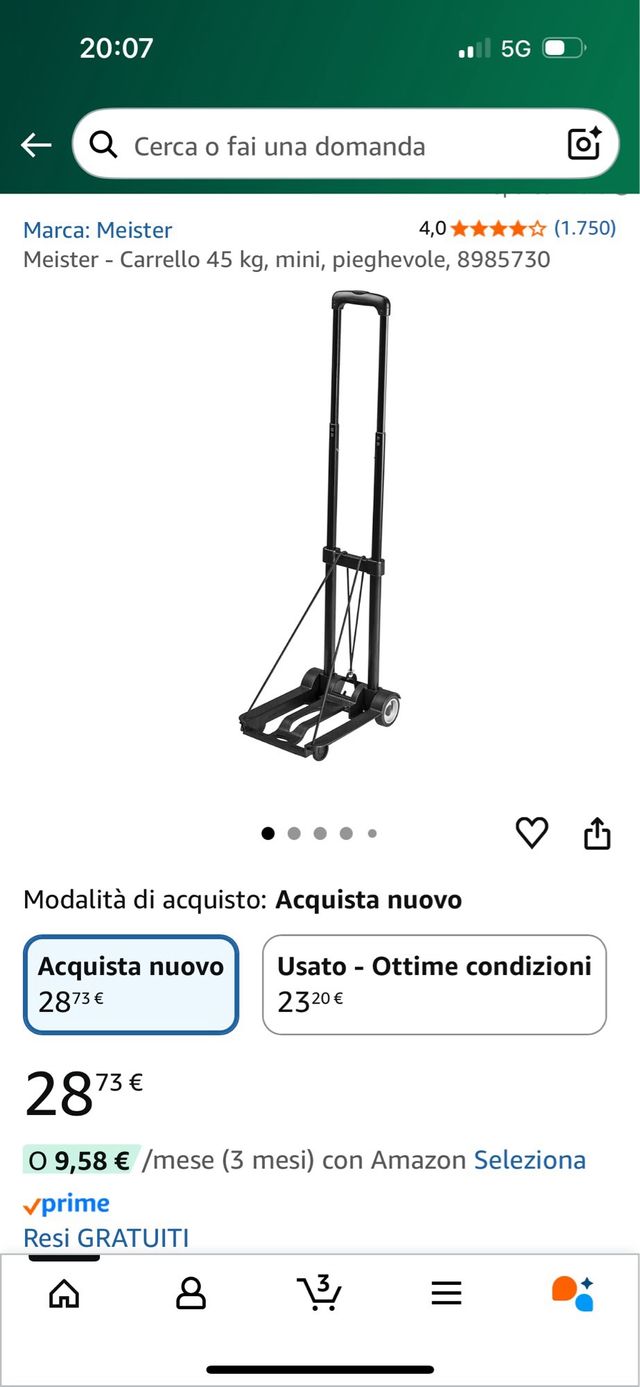 Carrello pieghevole marca Meister, con una capacità di carico di 45 kg. È un modello compatto e facile da trasportare. - Struttura in metallo. - Ruote resistenti.