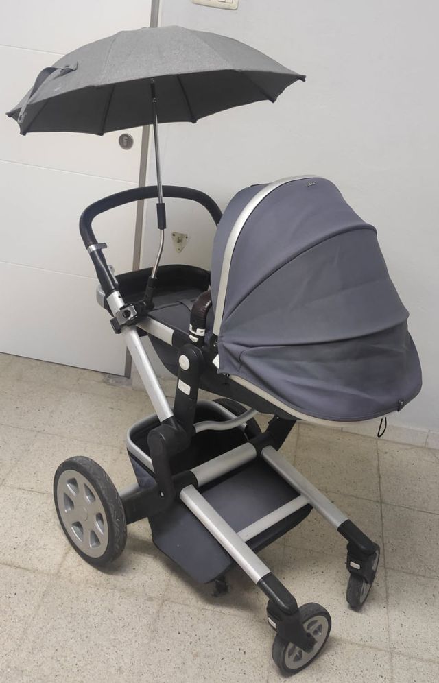 Oltre al telaio, alla culla e al passeggino, la confezione include un ombrello abbinato.