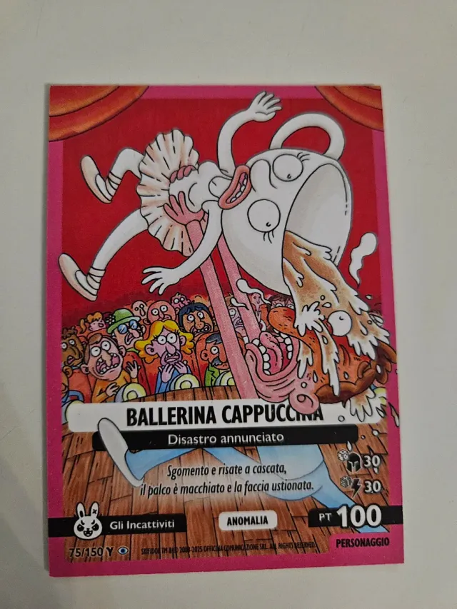 Dettagli del prodottoCarta Ballerina Cappuccina con la dicitura Disastro annunciato. Fa parte della serie Gli Incattiviti e ha il simbolo Anomalia. SERIE GAMMA ANOMALIA GALATTICA 75/150