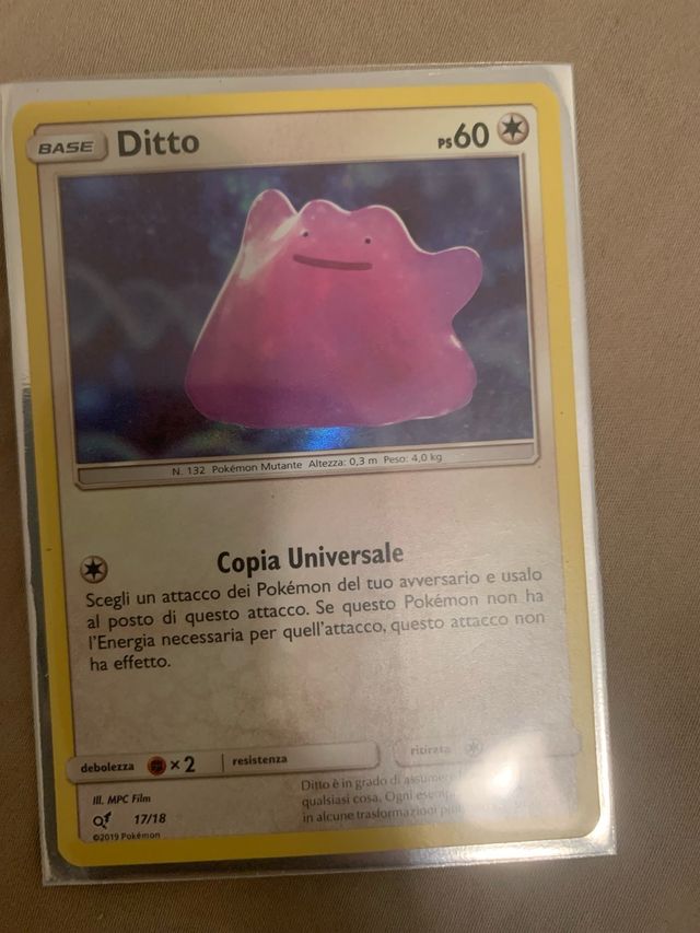 Bellissima carta Pokémon di Ditto, near mint. - È la numero 17/18. - Presenta una leggera brillantezza. - Ottima aggiunta per collezionisti.