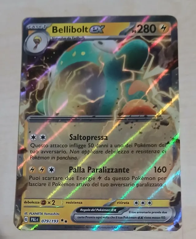 Carta Pokémon Bellibolt ex dalla serie Plasma Gale Numero carta: 079/193 Evoluzione da Tadbulb Illustratore: PLANETA Yamashita