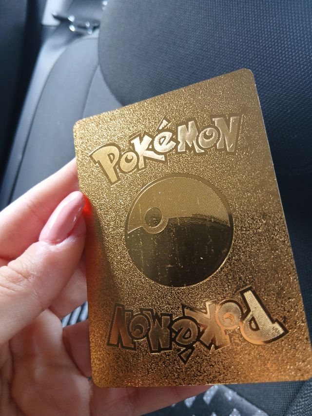 Carta Pokémon Charizard in metallo dorato. - Design esclusivo color oro. - Logo Pokémon in rilievo.