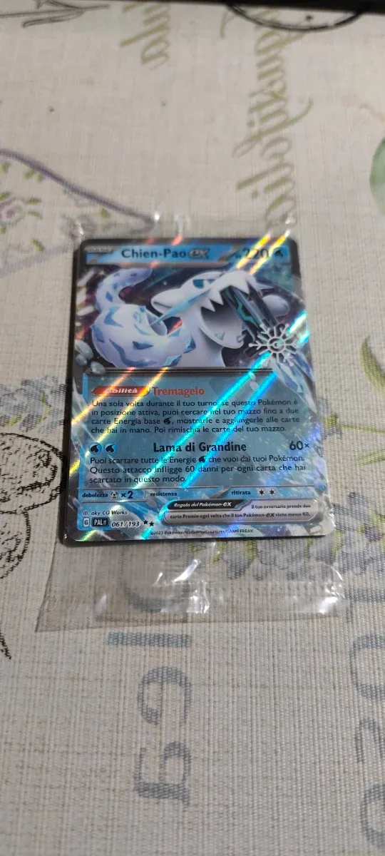 Dettagli del prodottoCarta Pokémon Chien-Pao ex (061/193) proveniente dal Calendario dell'Avvento 2023 (Holiday Calendar).