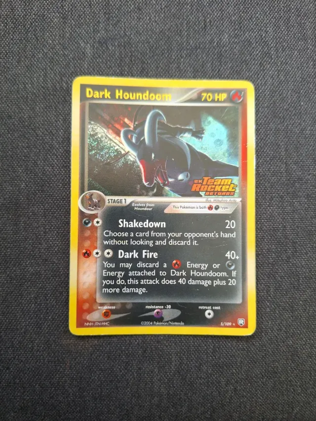 Carta Pokémon Dark Houndoom della serie EX Team Rocket Returns. - Numero carta: 5/109 - HP: 70 - Attacco Shakedown - Attacco Dark Fire