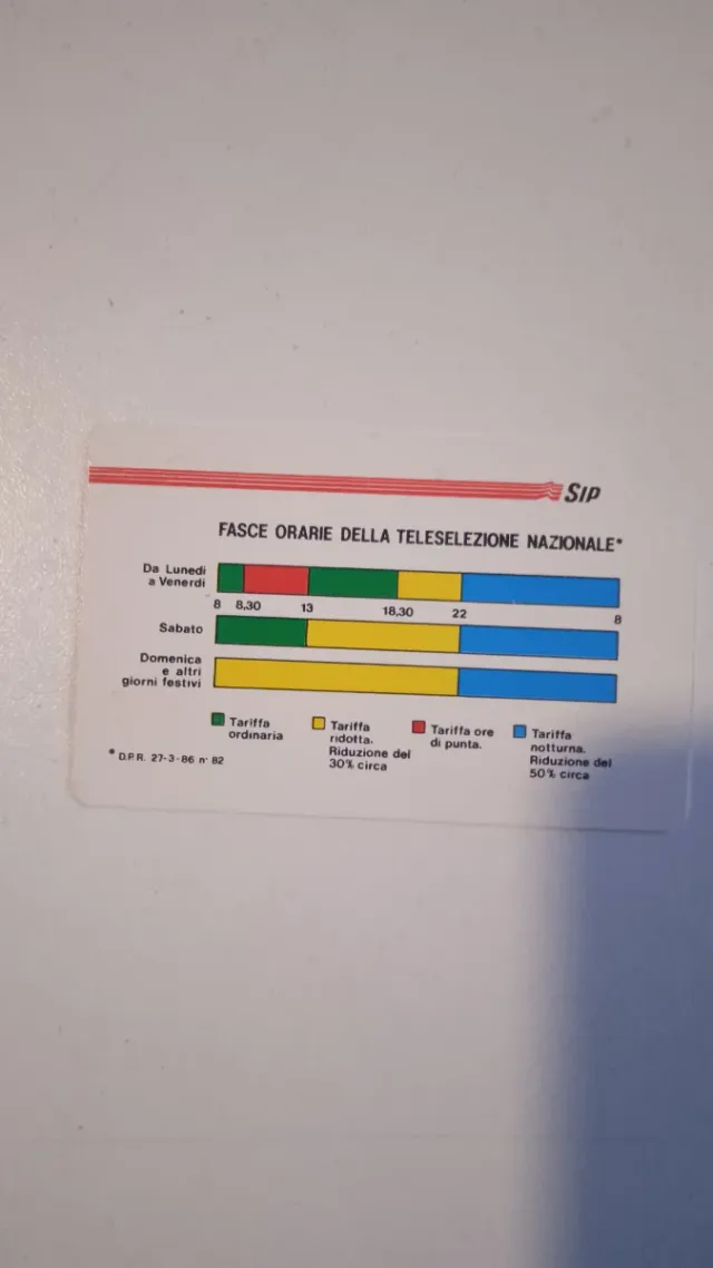Dettagli del prodottoCarta telefonica SIP con le fasce orarie della teleselazione nazionale.