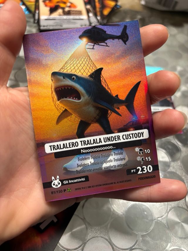 Carta Tralalero Tralala Under Custody dal gioco Gli Incattiviti. - Personaggio: Tralalero Tralala - Punti: 230 - Serie: 81/150 P