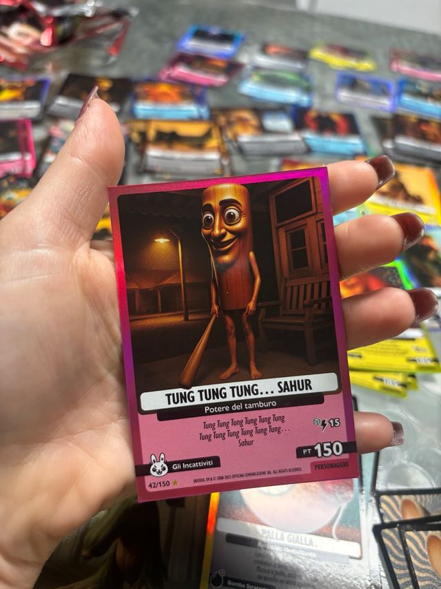 Carta Tung Tung Tung... Sahur con Potere del tamburo. - Numero carta: 42/150 - Punti personaggio: 150 - Punti attacco: 15