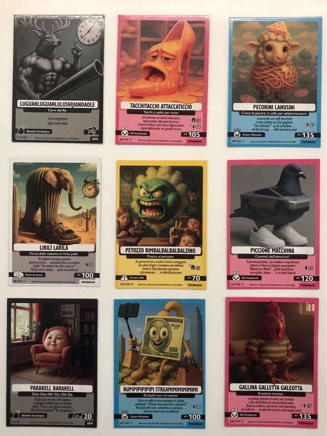 Bellissimo set di 9 carte da gioco del famoso gioco Brainrot di Skifidol. Le carte sono in ottime condizioni. Categoria carte: cosi cosi.