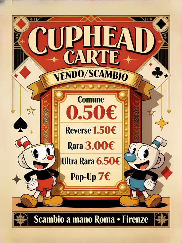 Dettagli del prodottoVendo oppure Scambio (solo di persona Roma o Firenze e dintorni) le carte Cuphead: Out of the Cards che vi mancano.