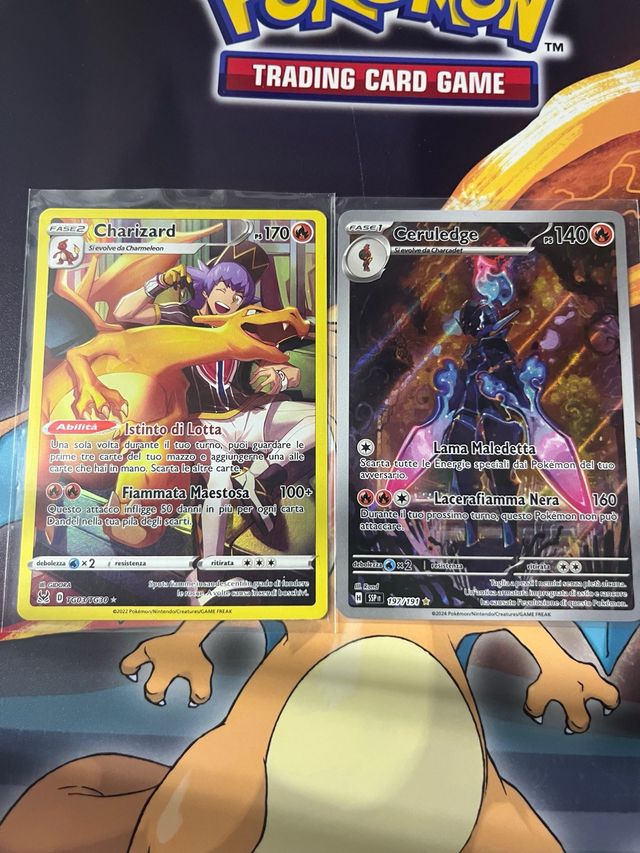 Dettagli del prodottoVendo due carte Pokémon, Charizard e Ceruledge, in ottime condizioni.