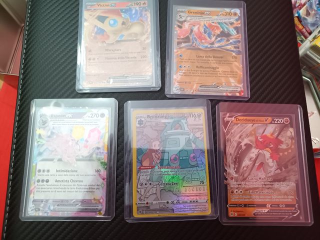 Dettagli del prodottoLotto di 5 carte Pokémon, tutte in bustina protettiva.