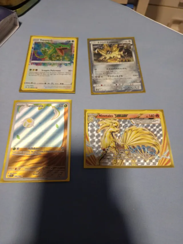 Set di carte Pokémon. - Carta Pokémon Rayquaza. - Carta Pokémon Tarountula. - Carta Pokémon Ninetales. - Carta Pokémon in lingua giapponese.