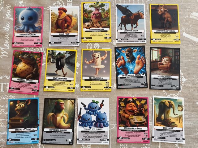 Carte brainrot Skifidol universo psichedelico. Legenda prezzi: ❌ --> € 0,40 👁️ --> € 0,50 ⭐ --> € 3,00