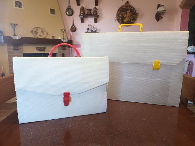 Dettagli del prodottoCartelle rigide in plastica una grande e una più piccola, comode per trasportare materiale scolastico o documenti, come mostrato in foto quella piccola presenta due segni,quasi invisibili,di adesivi, quella grande delle usure ma ciò non compromette la loro funzione, vendo anche singolarmente.