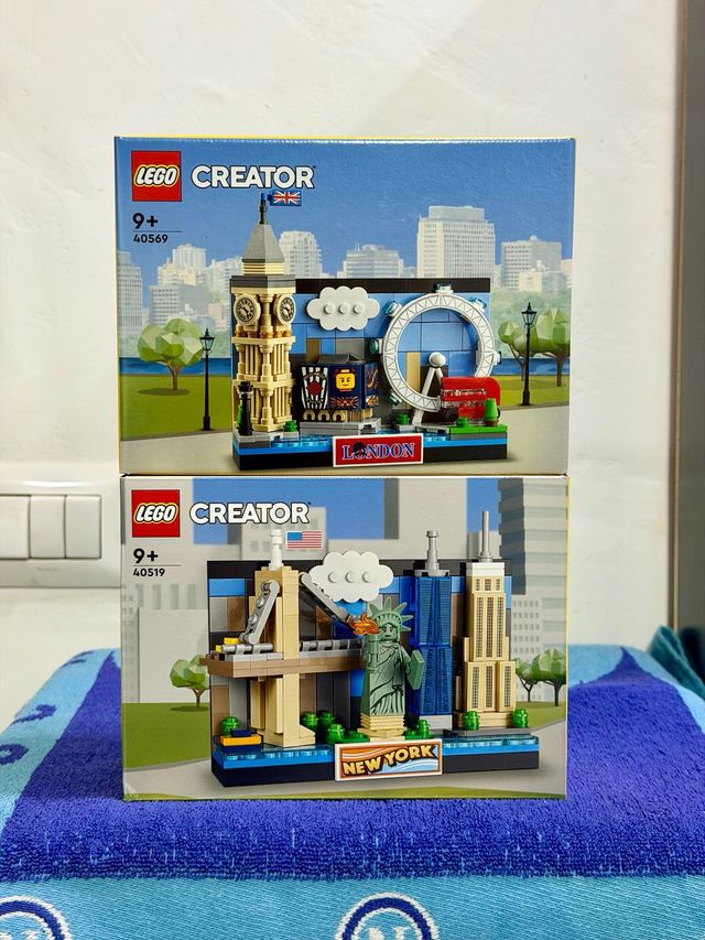 Set di due postcard LEGO Creator che raffigurano Londra e New York. - LEGO Creator Postcard 40569 London - LEGO Creator Postcard 40519 New York