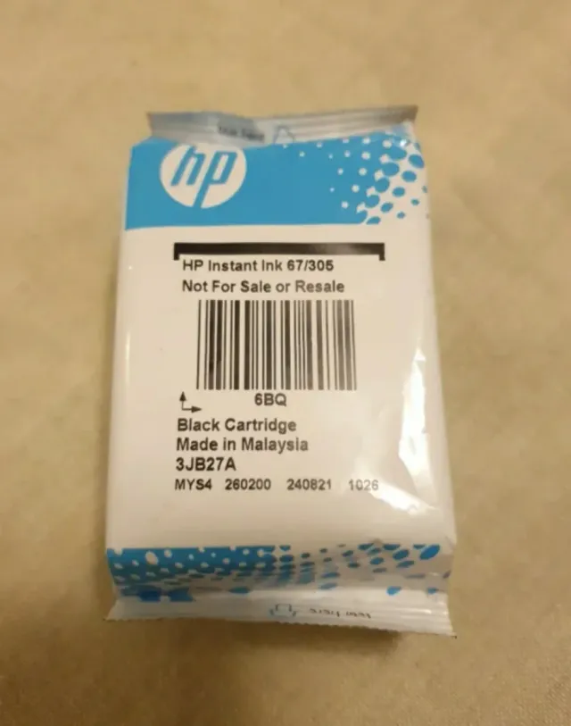 Cartuccia di inchiostro nero HP Instant Ink. - Modello: 67/305 - Tipo: Cartuccia nera - Prodotto in Malesia - Codice articolo: 3JB27A
