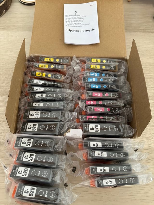 Dettagli del prodottoSupply Guy 5 cartucce d'inchiostro gialle, 3 blu, 4 magenta, 8 nere fotografiche e 7 nere compatibili con Canon PGI-520, CLI-521, PGI-525, CLI-526, PGI-550, CLI-551, PGI-570, CLI-571, PGI-580 CLI-581, PGI-5, CLI-8, PGI-9, PGI-35, CLI-36, CLI-42, PGI-42, PGI-9 GI-72, PGI-555, Pixma IP3600 IP4600 IP4700 MP540 MP560 620 MP630 MP640 MX860 MX870 La descrizione è stata tradotta automaticamente.
