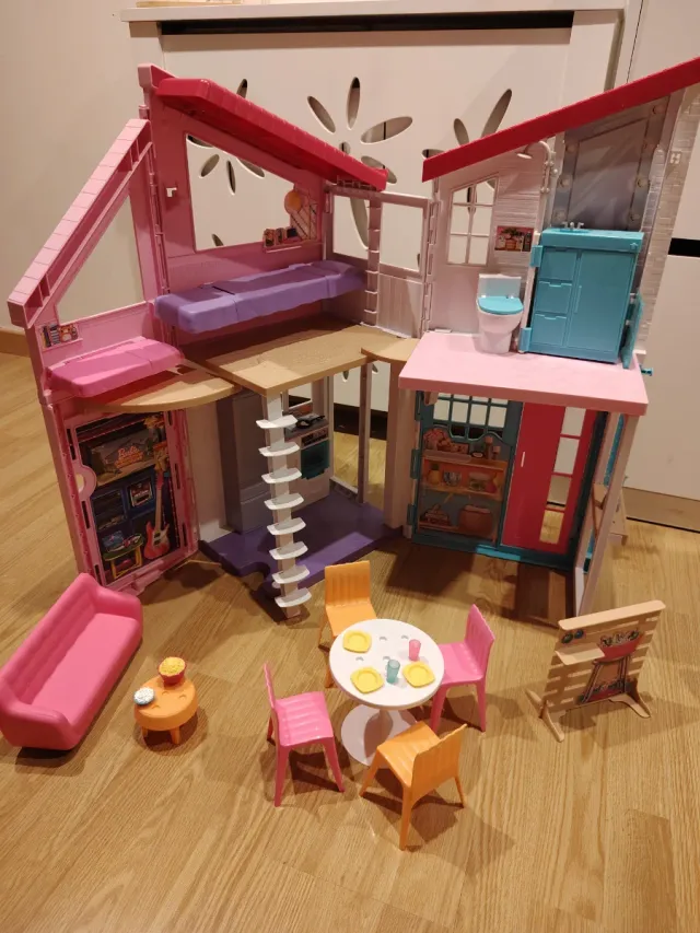 Dettagli del prodottoCasa delle bambole Barbie Malibu, un set di gioco per ore di divertimento. Ho la scatola nel caso la vendessi di persona a Zaragoza. Se spedisco, non smonto né invio la scatola originale. Include accessori come divano, tavolo e sedie. Manca solo il coperchio del frullatore. Design a due piani con stanze. Colori vivaci e dettagli. Ideale per collezionisti e gioco per bambini. Preferibilmente Zaragoza per vendita diretta. La descrizione è stata tradotta automaticamente.