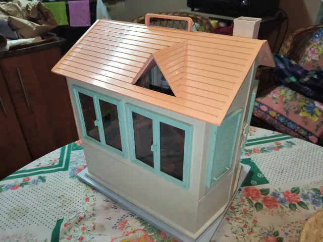 Dettagli del prodottoCasa delle bambole vintage del marchio Chabel. Un classico per collezionisti. Tetto a due falde in colore pesca. Finestre con cornici in turchese. Pareti in crema. Perfetto tranne per un pezzo di tetto attaccato e una crepa non evidente. Anni 80, totalmente originale, con il 95% di tutti gli accessori. La descrizione è stata tradotta automaticamente.