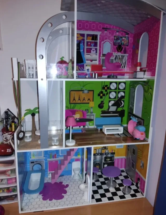 Dettagli del prodottoCasa delle bambole in legno a più piani, ideale per ore di gioco. Design dettagliato con molte stanze. Include accessori come mobili e decorazioni. Struttura colorata e attraente. La descrizione è stata tradotta automaticamente.