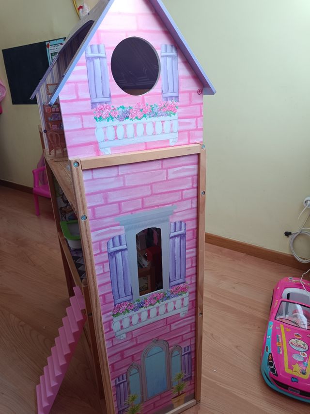 Dettagli del prodottoIncantevole casa delle bambole in legno con un design a mattoncini rosa. COME NUOVO. con alcuni mobili in più di quelli con cui sono arrivato originariamente, è costato 150 euro su Amazon 2 anni fa. Misura le ultime foto.