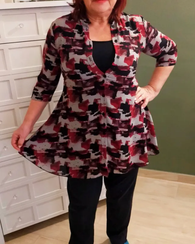 Casacca peplum donna fantasia grigio/rossa/nera
