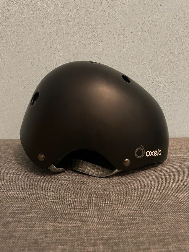 Caschetto protettivo Oxelo di colore nero, ideale per monopattino o altre attività sportive. - Design moderno e minimale. - Logo Oxelo visibile sul lato.