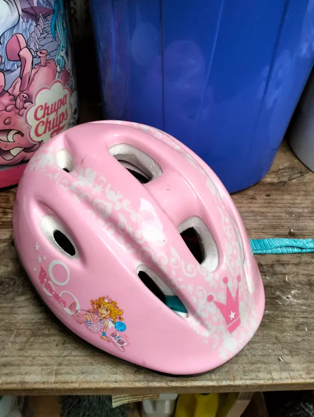 Dettagli del prodottoCasco per bicicletta per bambina in colore rosa con decorazione da principessa, con un design di principesse e corone. Del Decathlon marca btwin. - Design con disegni di principesse. - Dettagli di corone e ornamenti. - Colore rosa. - Età 5 anni. La descrizione è stata tradotta automaticamente.