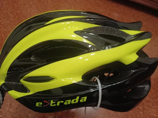 Casco da ciclismo Extrada con un design sportivo Colore giallo fluo e nero lucido.