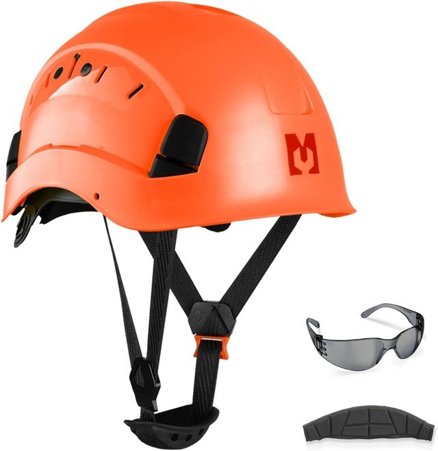 Casco di Sicurezza, Casco Protettivo EN397 con Occhiali Antiappannamento, Fascia Regolabile da 53 a 63cm, Materiale ABS Resistente Per Uomini Donne