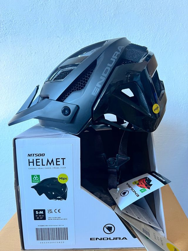 Casco da mountain bike Endura MT500 nero, nuovo. - Tecnologia Mips integrata. - Taglia S-M (51-56 cm). - Design moderno e ventilato.