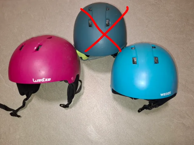 Dettagli del prodottoSet di tre caschi da sci per bambini del marchio Wedze. - Casco rosa. H 100, 8€ - Casco turchese. H 100, 8€ - Casco blu verdastro. H 500, 15€ (venduto) La descrizione è stata tradotta automaticamente.