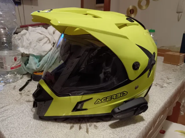 Dettagli del prodottoCasco da moto marca Acerbis, taglia L, con interfono/ bluetooth e visiera sole interna , colore giallo. In ottimo stato.
