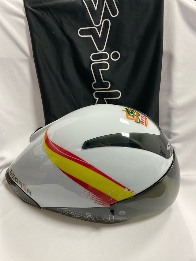 Dettagli del prodottoCasco da ciclismo Spiuk Aizea con design ispirato alla Spagna. Colore bianco con dettagli della bandiera spagnola. Visiera scura. Logo Spiuk. Design aerodinamico. Taglia M-L La descrizione è stata tradotta automaticamente.