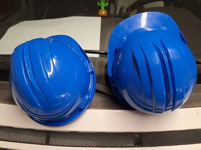 Dettagli del prodottoDue caschi di sicurezza di brillante colore blu. Progettati per proteggere la testa in ambienti di lavoro. Materiale: plastica resistente. Colore: blu. La descrizione è stata tradotta automaticamente.
