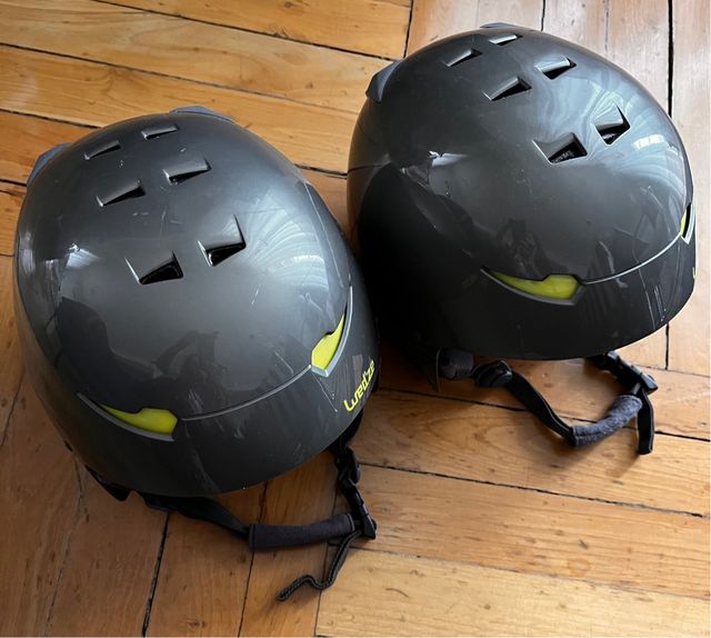 Dettagli del prodotto2 caschi grigi da sci per bambini. Taglia P (53-56cm). Wedze. Come nuovi, usati solo una stagione. Prezzo Decathlon 34,99€. Vendo ciascuno a 15€, entrambi a 25€ La descrizione è stata tradotta automaticamente.