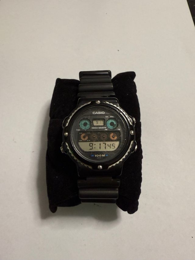 Casio watch Hexa Graph 917 HGW-10, VERY RARE ICONIC VINTAGE WATCH 1987/1989 - Iconic design . - Chronograph - Cassa e cinturino in gomma nera.