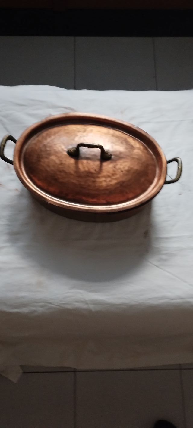 cass, rame stagnato con coperchio lunga 30 cm larga 10 cm vintage