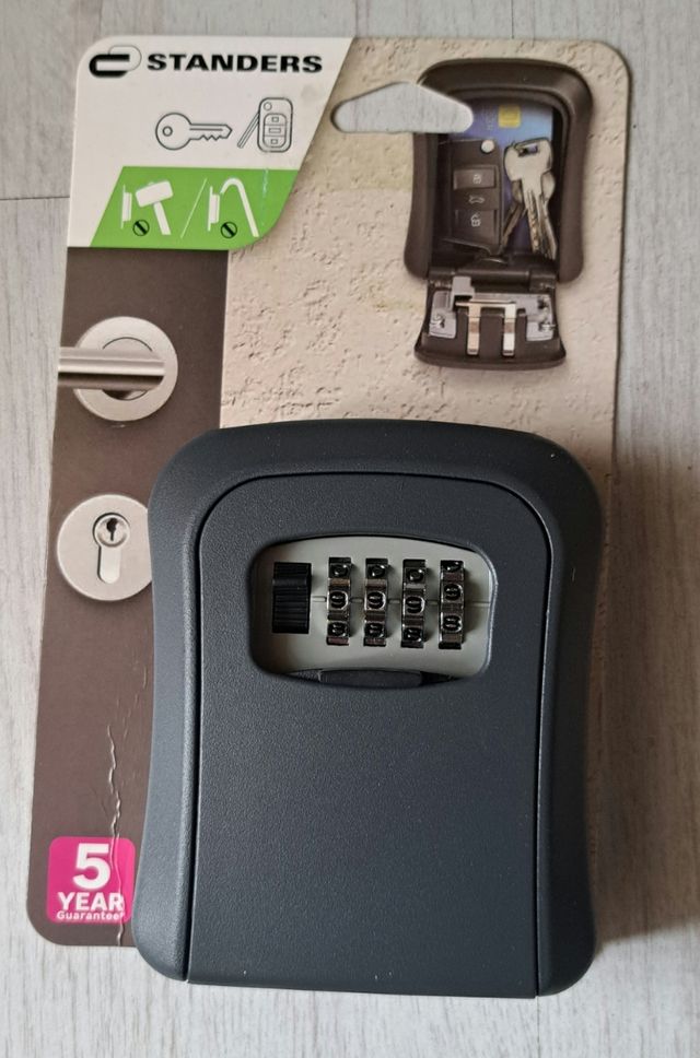 NUOVA Cassetta di sicurezza In lega di alluminio Da fissare a parete con tasselli Apertura a combinazione ( 4 Numeri ) Con mascherina frontale