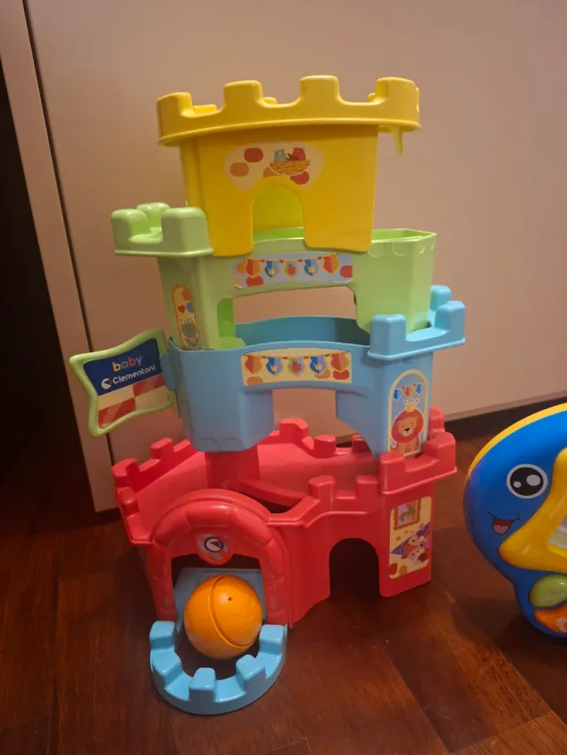 Dettagli del prodottoSet di giochi Clementoni composto da un castello impilabile e un pesciolino musicale.