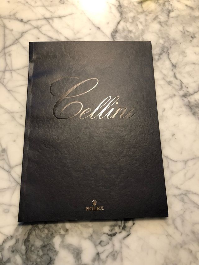 Catalogo originale Rolex Cellini. - Copertina nera con logo Rolex dorato. - Testo Cellini in rilievo argentato.