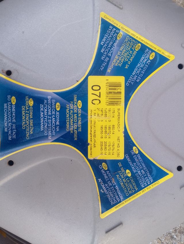 Vendo catene da neve, usate una volta. Misure,vedi foto,comprese di istruzioni e parti di ricambio.