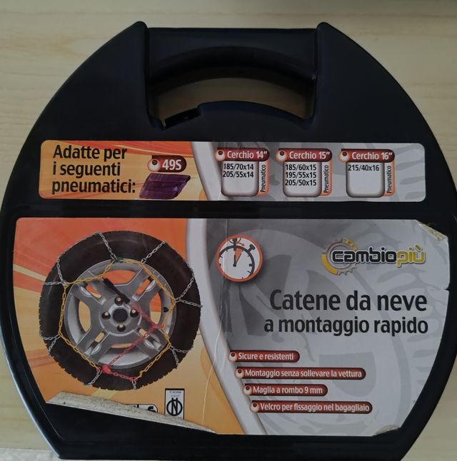 Dettagli del prodottoCatene da neve CambioPiù, perfette per l'inverno. Sono in ottime condizioni e facili da montare.