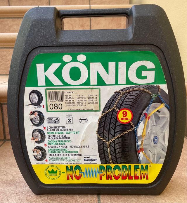 Dettagli del prodottoVendo catene da neve König modello Comfort 080, in ottime condizioni. Sono perfette per affrontare la neve con sicurezza.