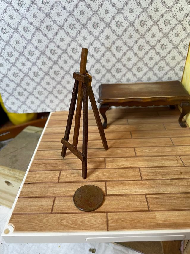 Dettagli del prodottofatto a mano artigianale Bellissimo cavalletto in legno per dollhouse, ideale per arredare la cameretta delle tue bambole.
