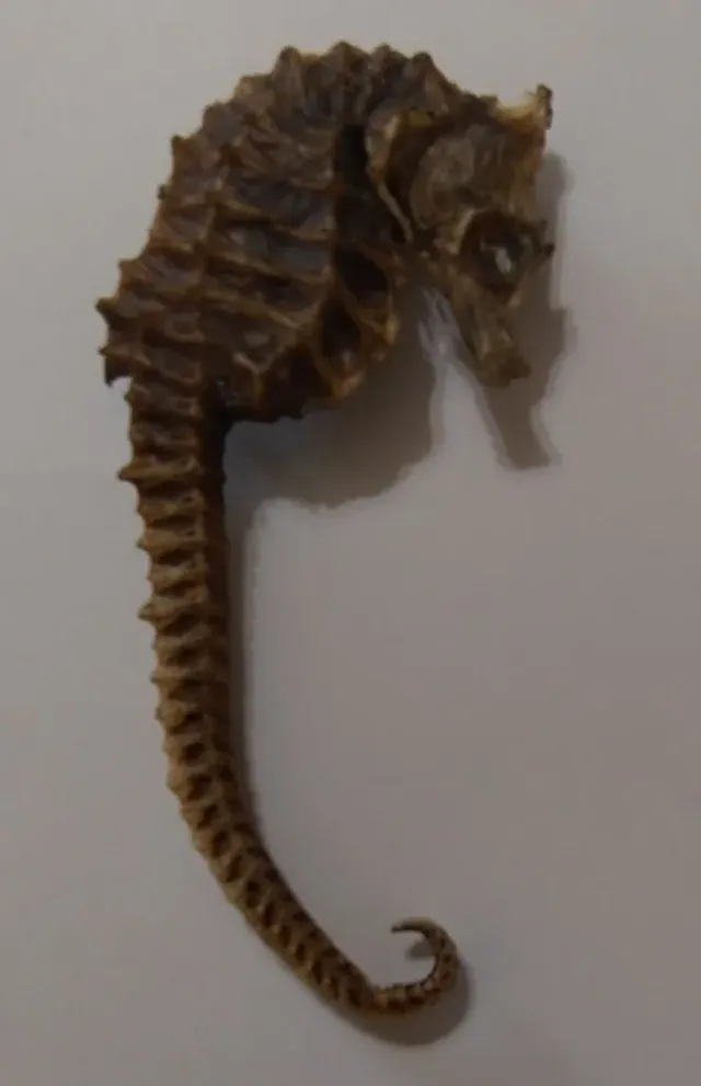 cavalluccio marino naturalmente essiccato vintage, coda lunga di ippocampo. Questo è un vero cavalluccio marino che è stato essiccato naturalmente misura 7 cm