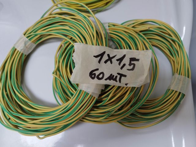 Cavo elettrico unipolare 1x1,5mm² G/V 3 rulli totale 60mt Tensione nominale 450/750V Materiale:Rame flessibile Made in Italy Prezzo totale