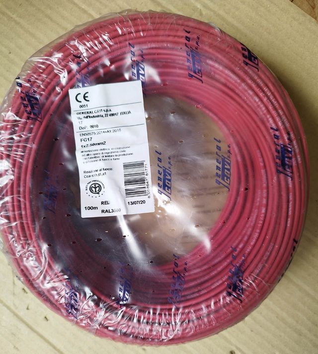 Cavo elettrico unipolare 1x2,5mm² rosso Bobina 90mt Materiale:Rame flessibile Tensione 450/750V Made in Italy Prezzo totale
